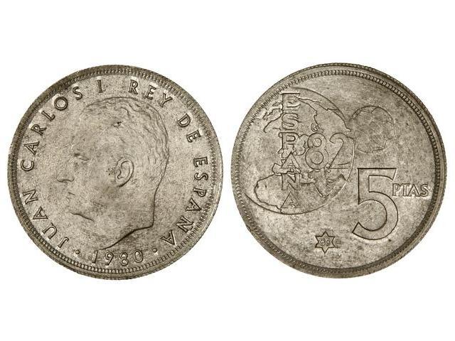 PESETA SYSTEM: JUAN CARLOS I - 5 Pesetas. 1980 (*80). 1,73 grs. ERROR: Acuñada en aluminio. SC.
