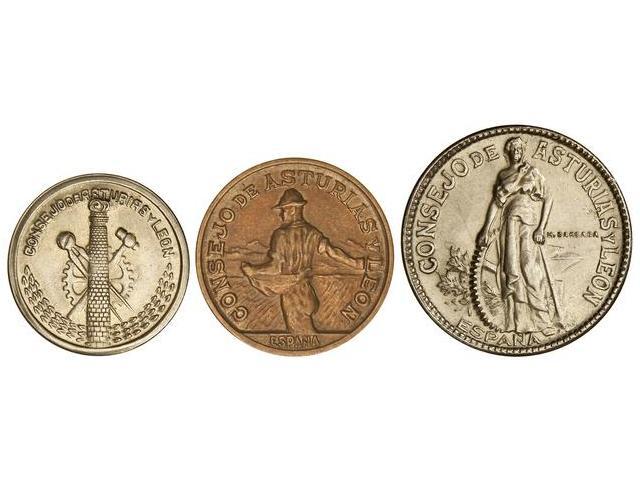 PESETA SYSTEM: LOCAL ISSUES OF THE CIVIL WAR - Lote 3 monedas 50 Céntimos, 1 y 2 Pesetas. 1937. CONSEJO DE ASTURIAS Y LEÓN. CuNi y AE. Vti-L1/L3. EBC-.