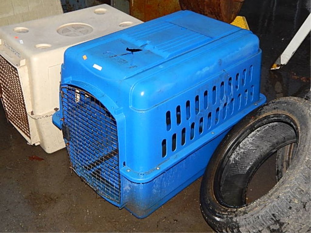 PET MATE DOG KENNEL - BLUE - CRACK AND HOLE ON TOP - as-is