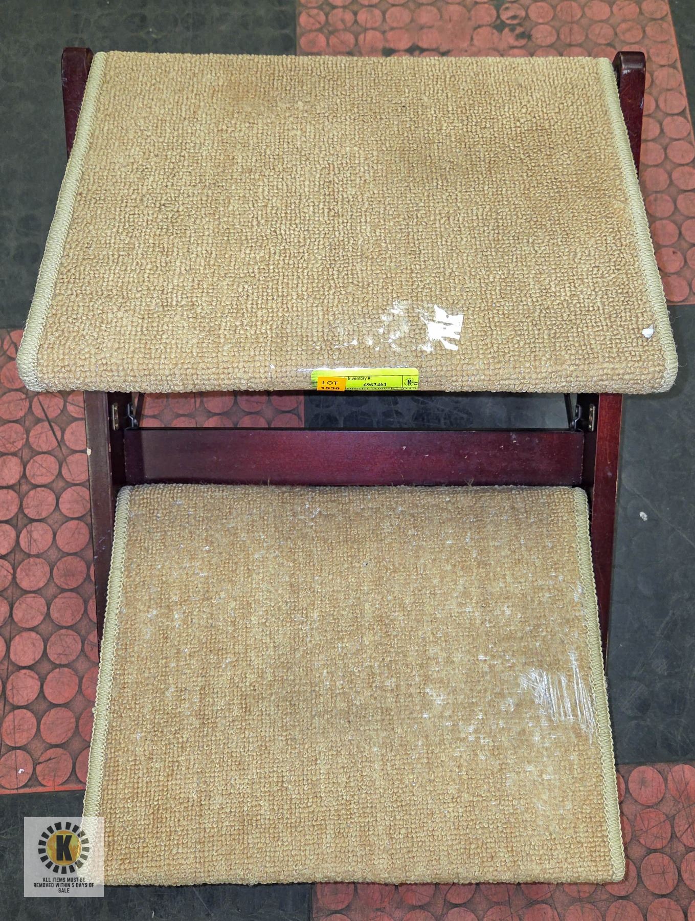 FOLDS FLAT. STURDY PINE HOLDS 130LBS. **CARPET WORN ON ONE STEP & GENERAL SCRATCHES//DINGS/MISSING PAINT FROM USE **ALL ITEMS MUST BE REMOVED BY 5PM SATURDAY, APRIL 3RD 2025. ALL REMAINING ITEMS WILL BE SUBJECT TO A $6.00 PER DAY STORAGE CHARGE. ANY ITEMS REMAINING AFTER MONDAY, MAY 19TH 2025 WILL BE CONSIDERED FORFEITED. NO REFUNDS WILL BE ISSUED FOR FORFEITED ITEMS. TO SCHEDULE A PICK UP APPOINTMENT CLICK HERE