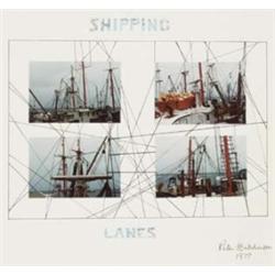 titled "SHIPPING" along upper edge and "LANES" along lower edge; signed, inscribed and dated "Peter Hutchinson 1976"