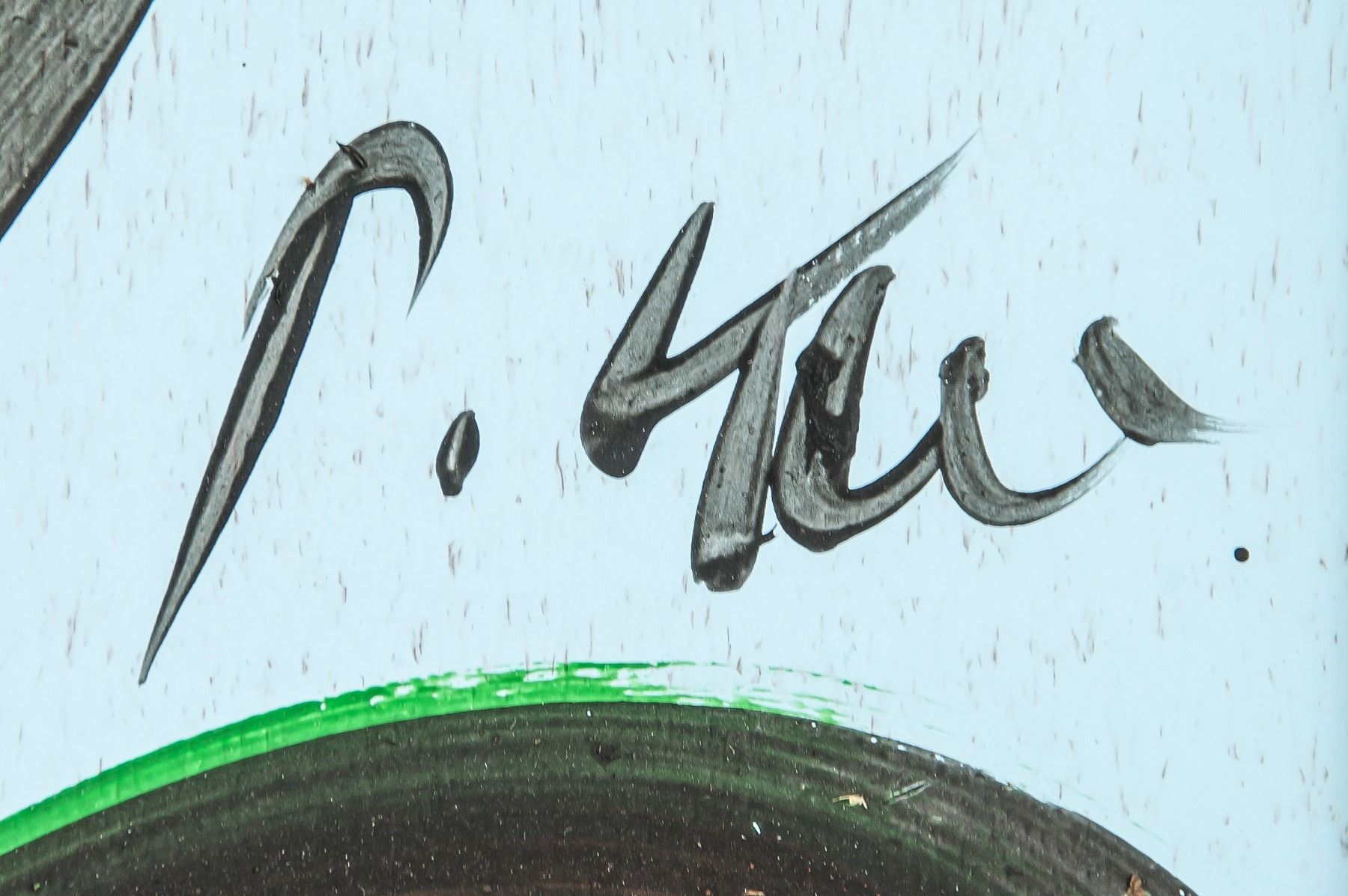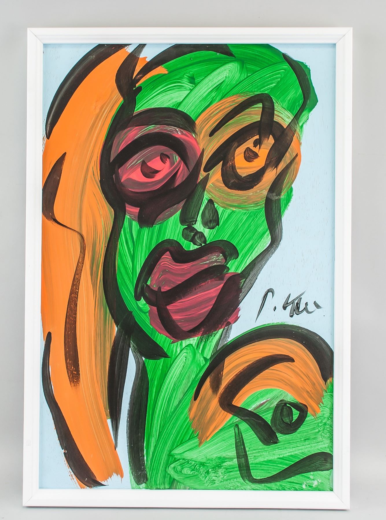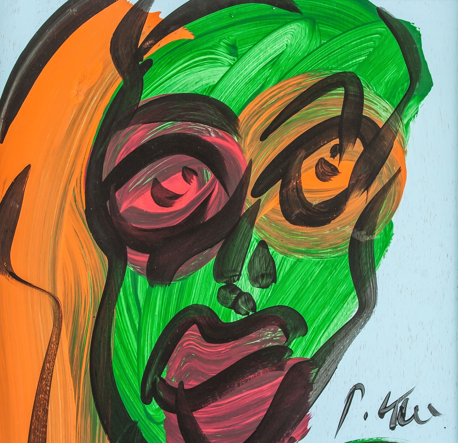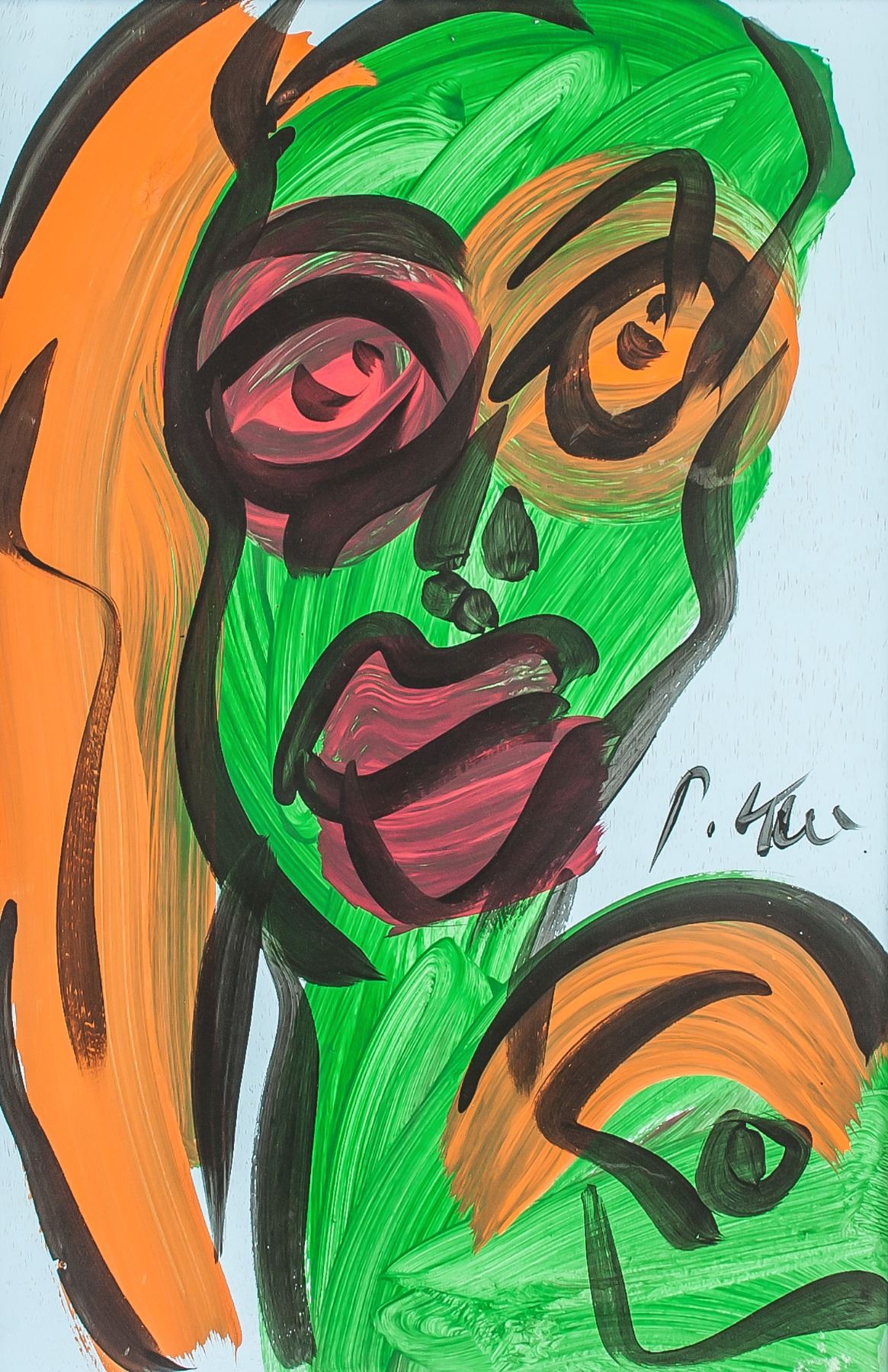 Oil on board, expressionist female portrait. Signed and attr. Peter Keil (b. 1942). Signature on lower tight corner. Peter Keil's style was influenced by German expressionism. In the works from his early Berlin years, he mainly focused on typical big city settings and characters on the fringes of society. The use of intensive to lurid colours and the absence of realistic representation have become characteristic of his painting style. In his paintings, the colour is applied with quick brushstrokes and occasionally with impasto techniques and the images are additionally abstracted by the use of Graffiti elements. Keil prefers to paint human figures, portraits, big city scenes, landscapes and still life images of flowers. His emotional way of painting is mainly driven by a desire for freedom from social constraints and conventions. PROVENANCE: Southern Ontario Estate. 23.5 x 15 in