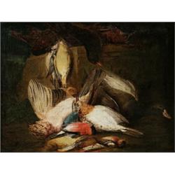 PETER RYSBRACK Flanders 1655-1729, attributed to Jaktstilleben med fåglar (a pair) Oil on canvas, 63 x 47 cm; relined, wear and retouches EXPERTISE: Cabinet Turquin, Mauduit, Etienne, Paris.