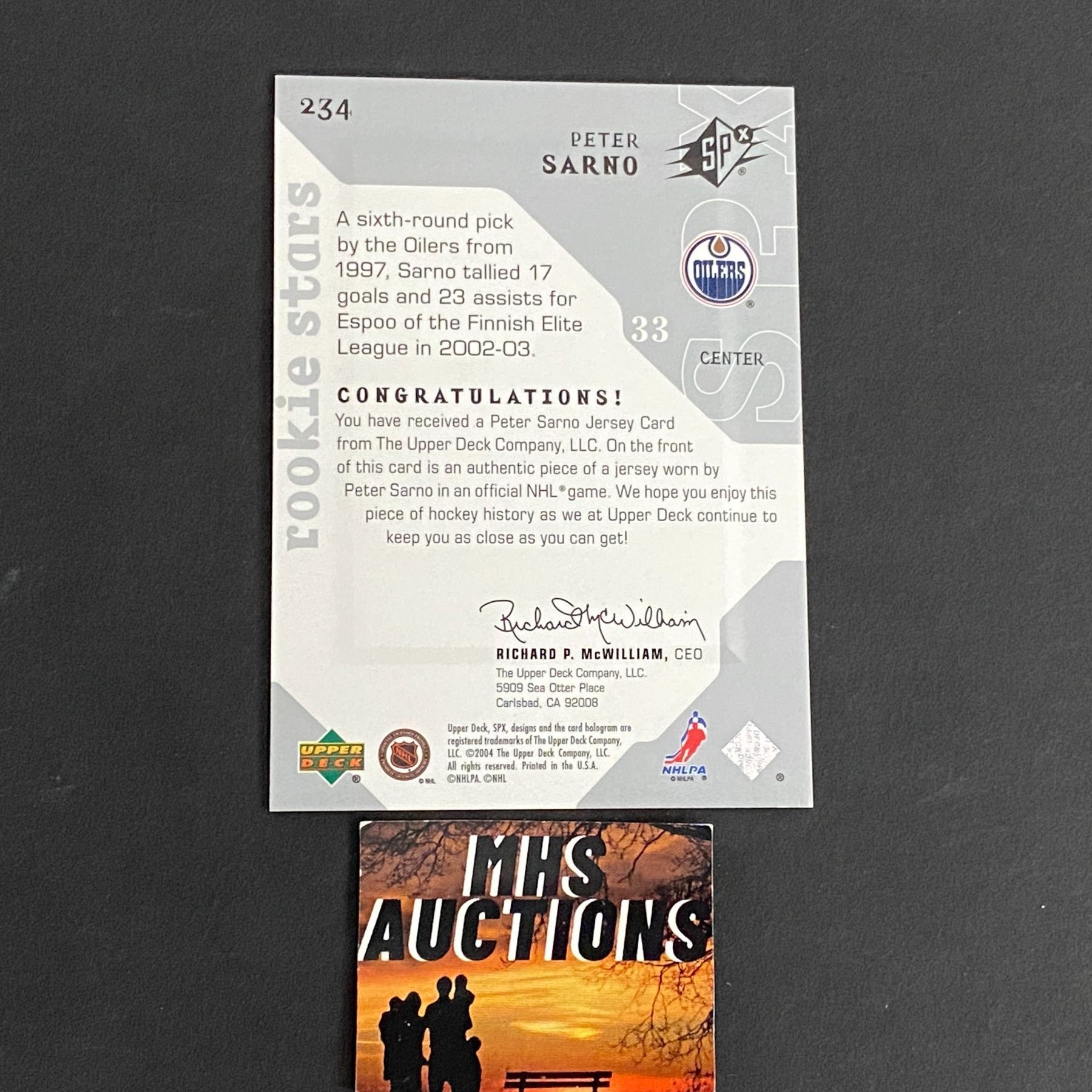 PETER SARNO 2003-04 SPX ROOKIE JERSEY HOCKEY CARD