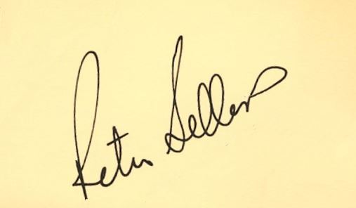 British actor. Peter Sellers autograph cutting in plastic hardcase.