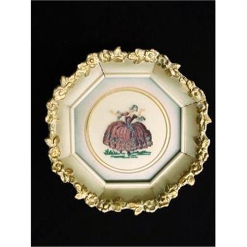 CHARMING FRAMED FINE PETIT POINT PICTURE DEPICTING PRETTY YOUNG GIRL DRESSED IN VICTORIAN STYLE DRESS - as per image - FRAME IS MADE OF WOOD - OCTAGONAL SHAPE, FINISHED IN ANTIQUE WHITE ADORNED WITH GOLD TONE, FLORAL SWAG. MEASURING ABOUT 6 inch in diam.US Buyer to pay 9.00 for shipping plus insurance.THANKS.