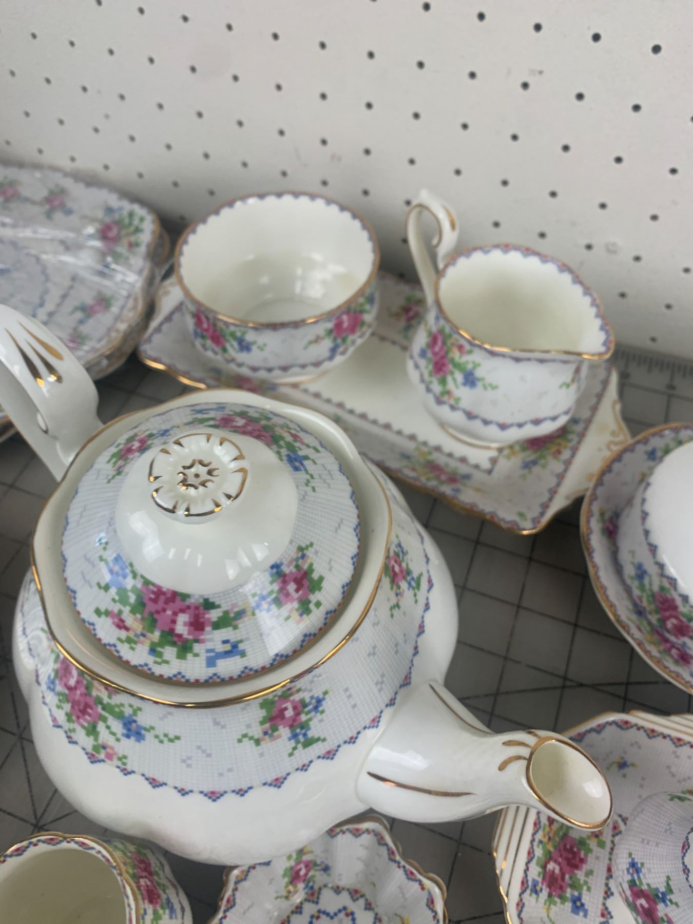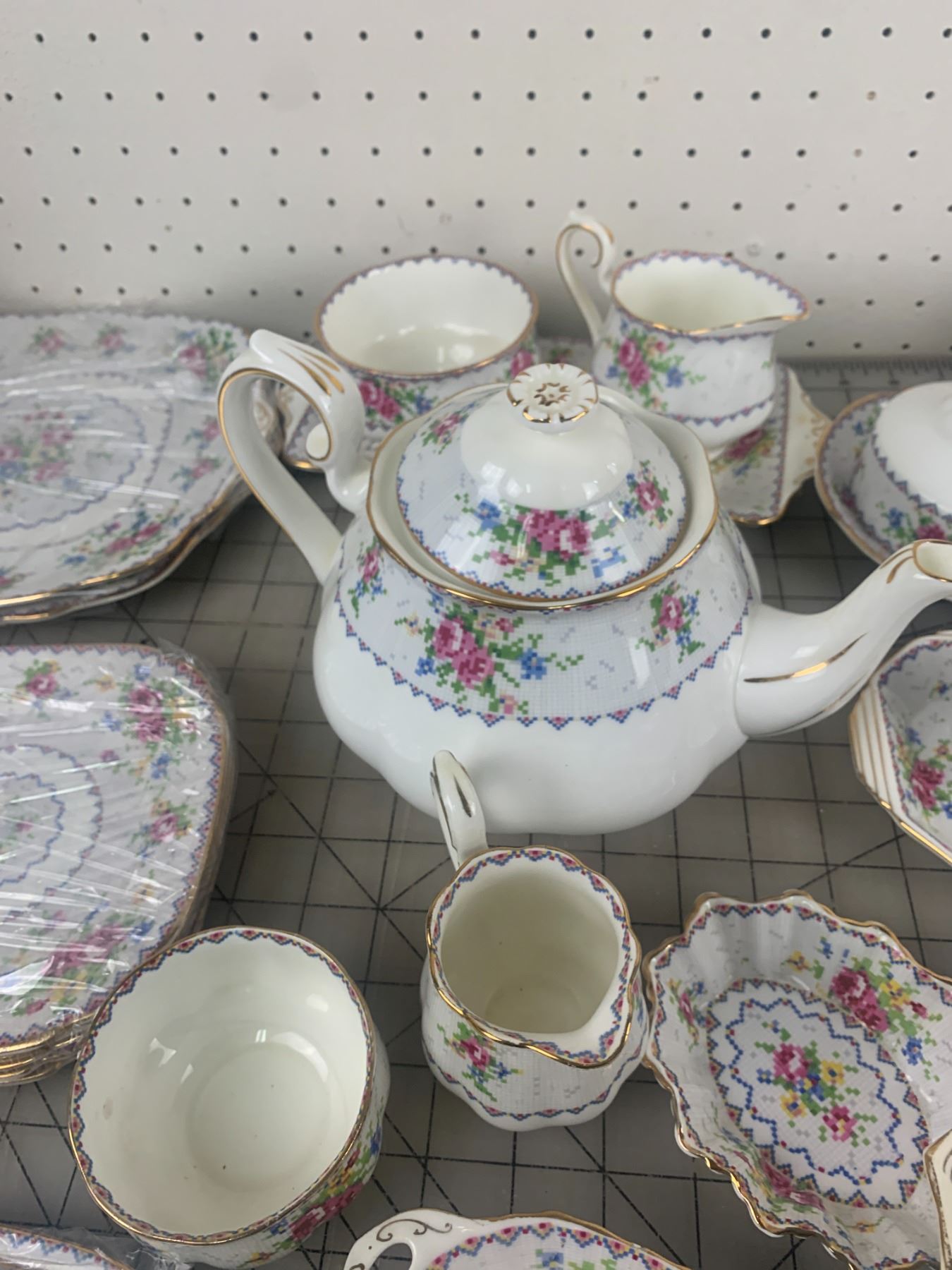 PETIT POINT ROYAL ALBERT CHINA TEA SERVICE