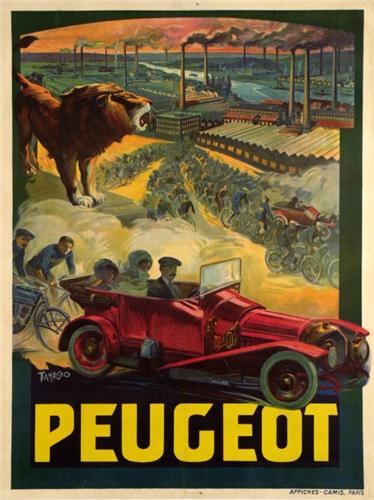 TAMAGNO. PEUGEOT. (1910 CA.). 156,7x118,5cm. (71,8x46,7in.). Litografía. A-. Entelado.