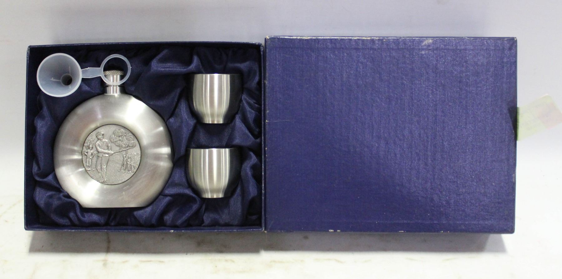 PEWTER 5 OZ FLASK & 2 CUPS SET, GOLF THEME