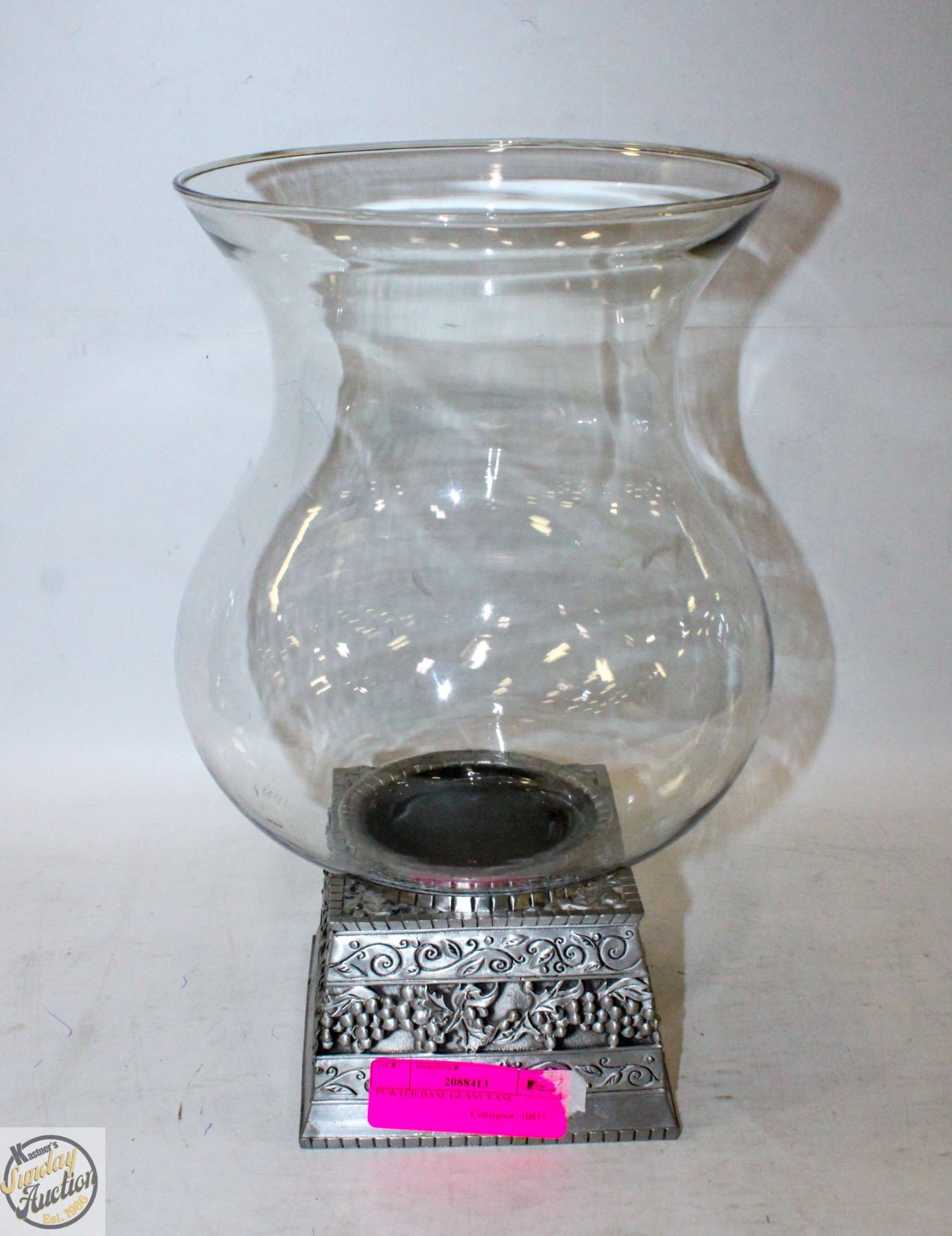 PEWTER BASE GLASS VASE