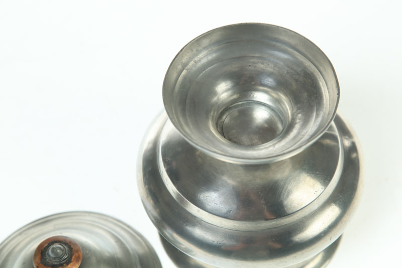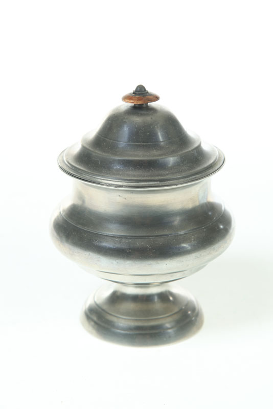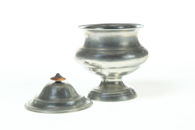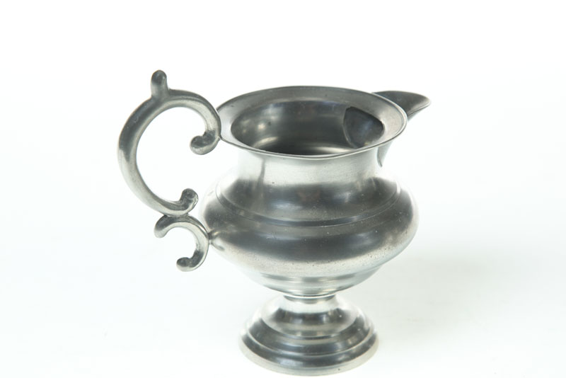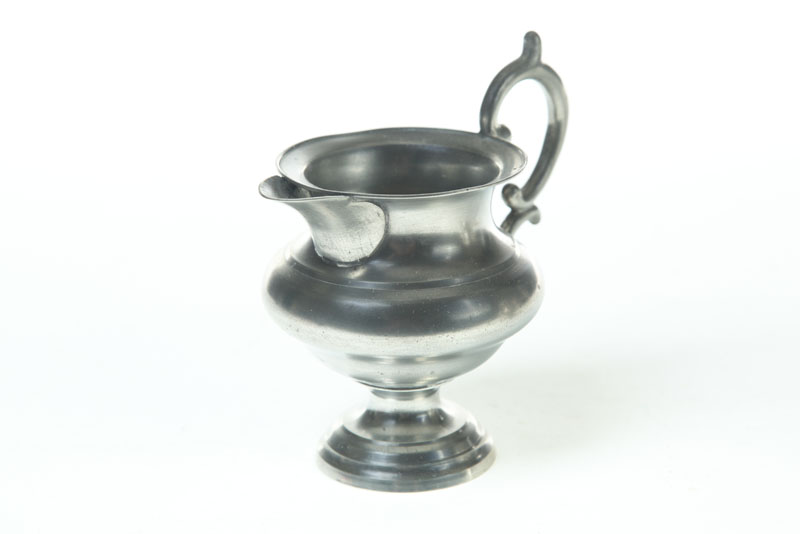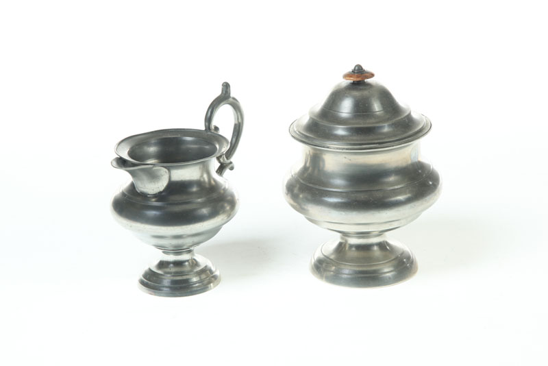 American, 2nd quarter-19th century. Covered sugar has wooden wafer finial, 7 1/4"h. Creamer, 6"h.