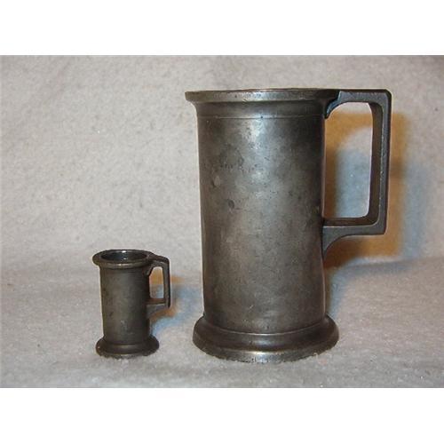 I BELIEVE THIS IS A PEWTER "DOUBLE DECILITRE" AND A "CENTILITRE" TANKARD OR MEASURING CUP" MADE IN GERMANY IN THE LATE 1800'S OR EARLY 1900'S BY " P.N.L. " and both marked # 226. IT MAY BE OLDER THAN THAT. I WISH SOMEONE OUT THERE COULD TELL ME PLEASE. One cup is 2.00" wide and the other cup is 1.00" wide. The TANKARD or Measuring Cups are in Excellent for there age. The larger one does have a dent at the base of the handle. It looks like the base of the handle is pushed in a little. You can see most of this in my pictures. Most of the items that I put on here were purchased by my late Grandmother. She purchased them while she was in Germany, France, Italy, Sweeden and lots of other countries including the Great USA in the 1950's to 1970's. If you have any questions about any of my items please feel free to ask. I HAVE A 811 FEEDBACK SCORE ON EBAY SO YOU CAN BID WITH CONVIDENCE. Thanks for Looking !!!