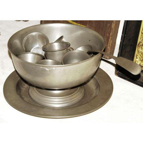 1 PEWTER PUNCH BOWL with cups and ladle