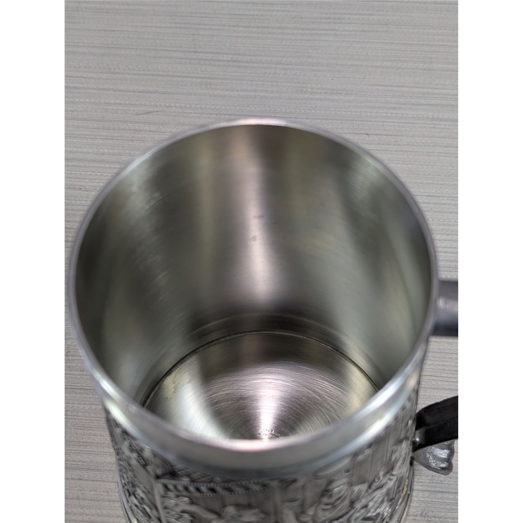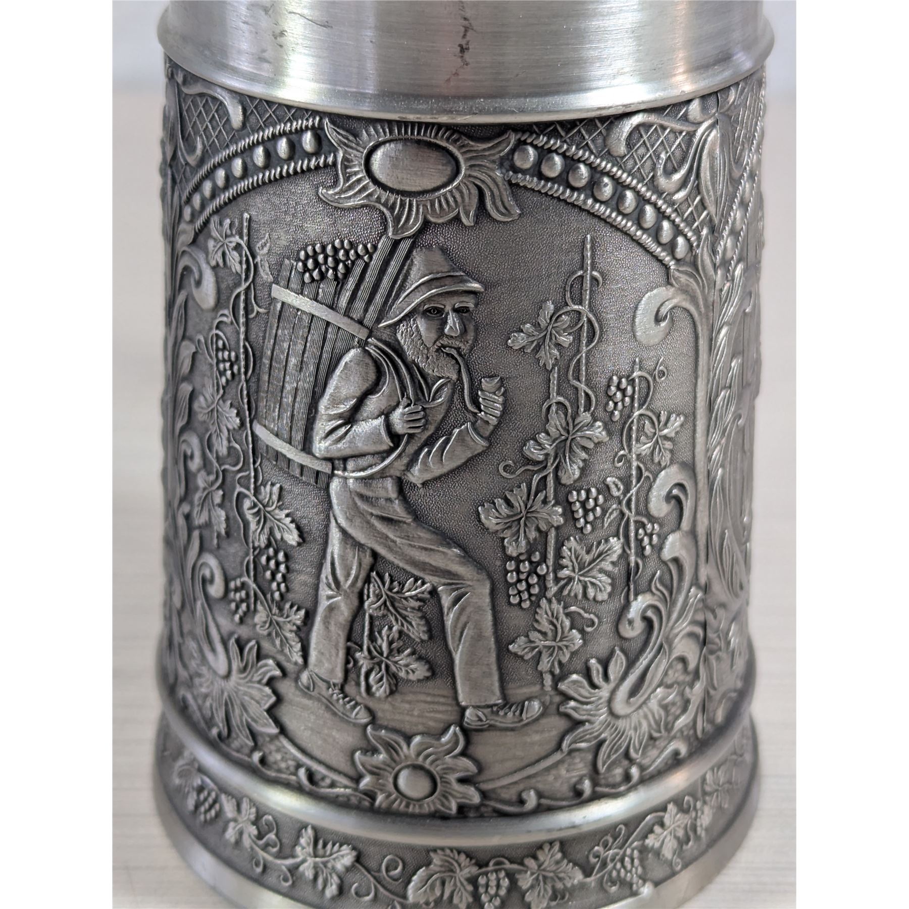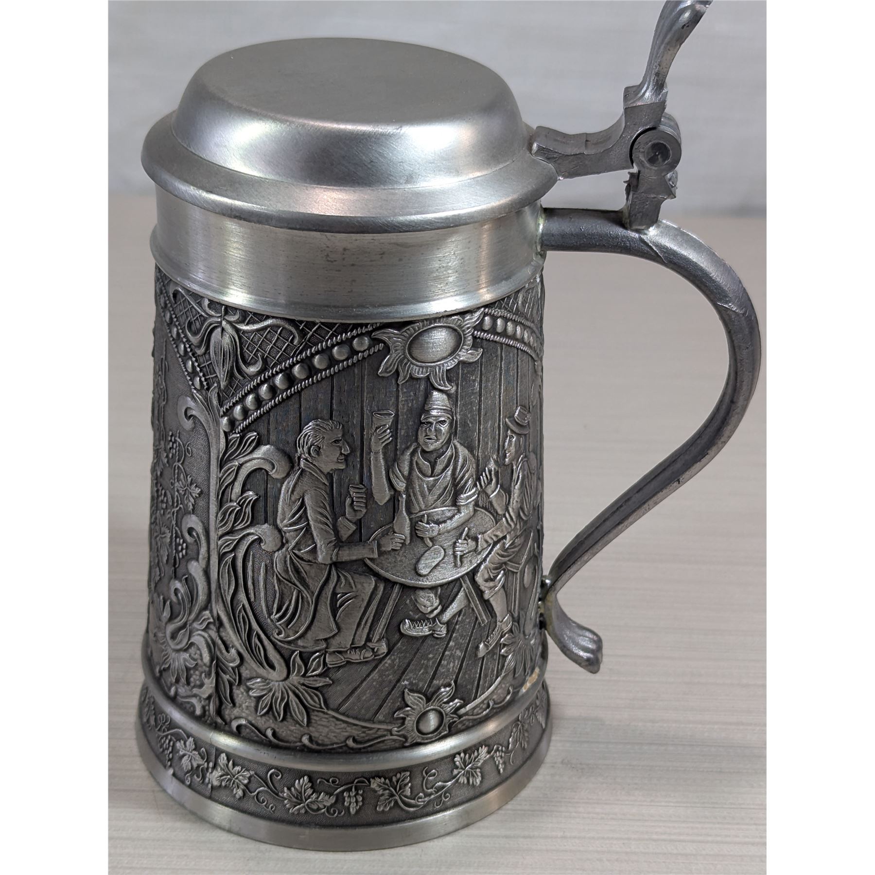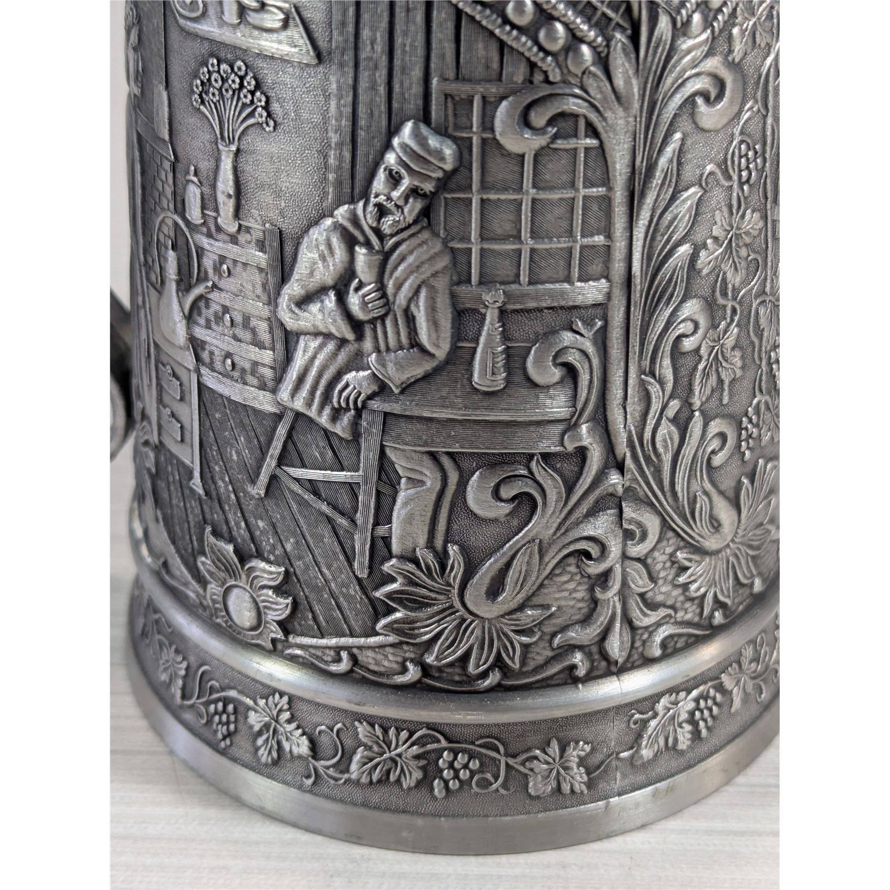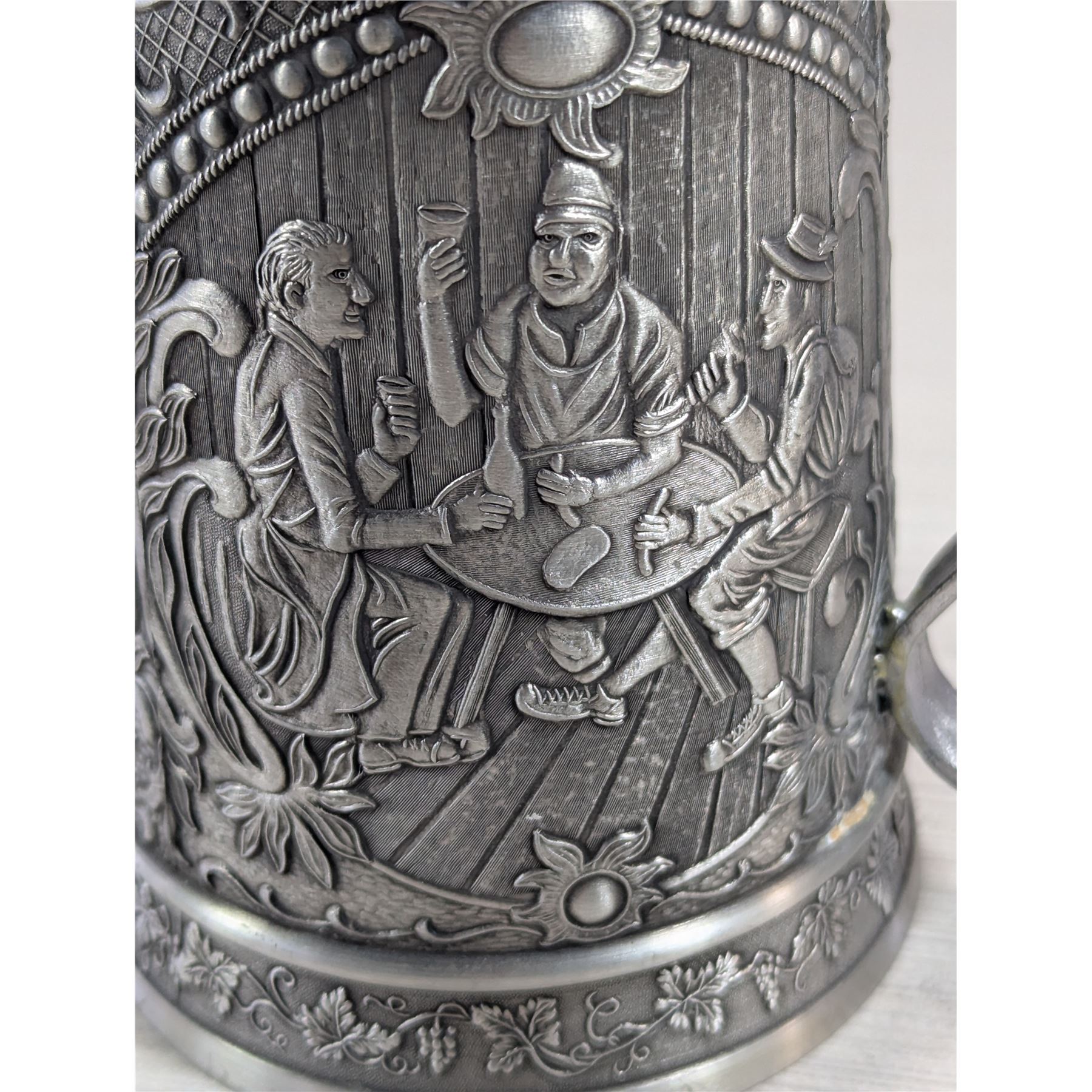 PEWTER TANKARD Made in West Germany. Three scenes on exterior of tankard.