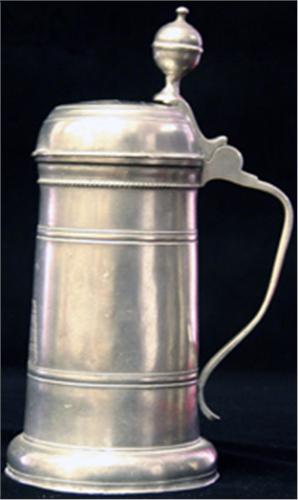 SKRÅKANNA, LIV MED BAND OCH FRÄCKLAD DEKOR, RUND LOCKKNOPP, LOCKET DATERAT 1814, TYSKLAND, H25 (SMÄRRE BRISTNING)