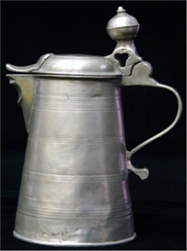 STOP, KONISKT, LIV MED BLADDEKOR, SVÄNGT HANDTAG, RUND LOCKKNOPP, 1/4 KANNA, HANS VIKSTEN, VÄSTERÅS 1807, H18 (SMÄRRE LAGNING)