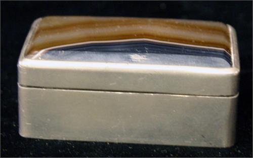 DOSA, TENN, INFÄLLD FASETTSLIPAD AGAT, GÅNGJÄRN AV MÄSSING, FIRMA SVENSKT TENN, STOCKHOLM 1956, B7