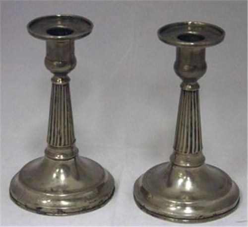 1 PAR LJUSSTAKAR, RUND FOT, REFFLAD STAM, GUSTAVIANSKA, TIDIGT 1800-TAL, OSTÄMPLADE, H15 (2)