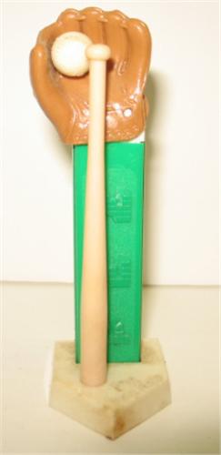 PEZ ‘HOME PLATE’ CANDY DISPENSER. Excellent condition and complete with bat, glove, and baseball. 4.25” H