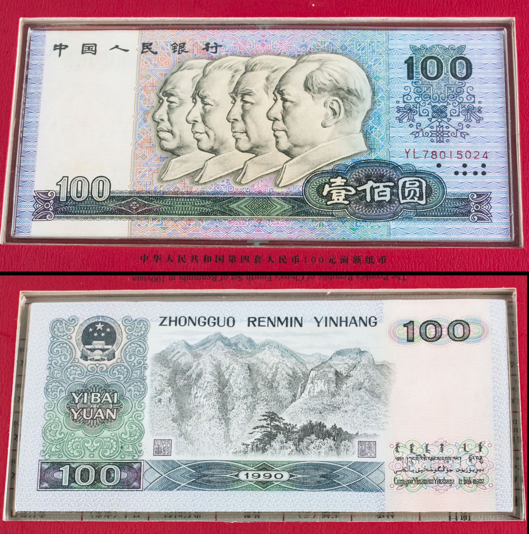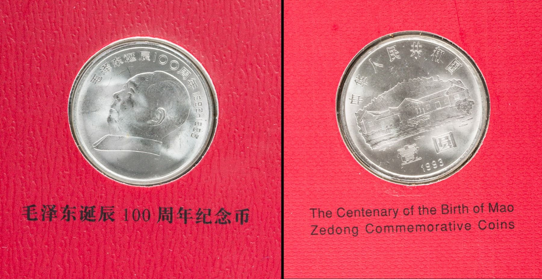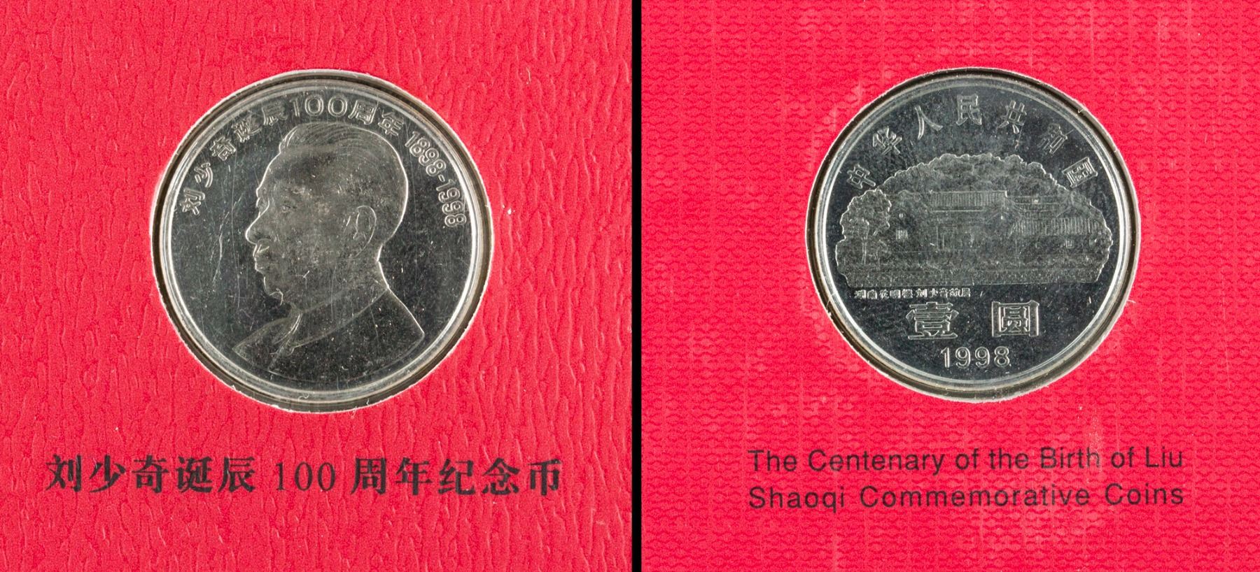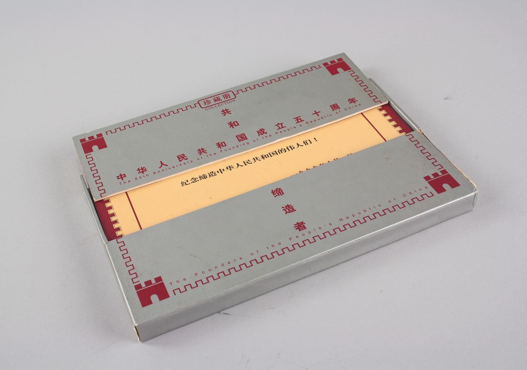 1999 China Collection book; commemorative issue the 50th Anniversary of the Founding of the People's Republic of China; 1 piece of 1988 100 Yuan bill; 1 piece of 1993 centenary of the birth of Mao Zedong nickel-plated steel coin; 1 piece of 1996 110th Anniversary of the birth of Zhu De nickel-plated steel coin; 1 piece of 1998 centenary of the birth of Zhou Enlai nickel-plated steel coin; 1 piece of 1998 centenary of the birth of Liu Shaoqi nickel-plated steel coin; with certificate; Paper: 8 cm x 16.5 cm, Diameter of Coins: 2.5 cm