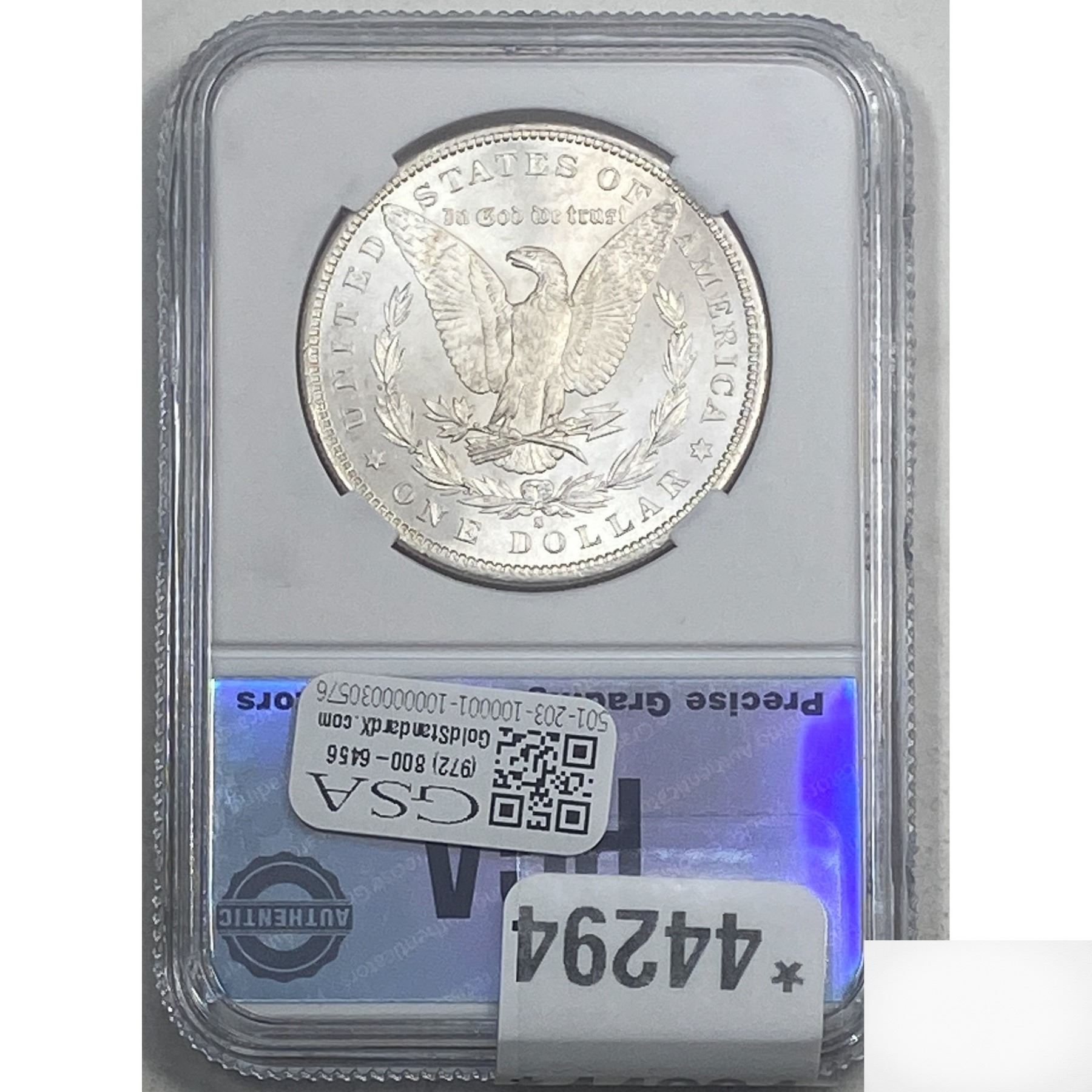 l. All non-certified coins and currency are guaranteed genuine, but are not guaranteed as to grade, since grading is a matter of opinion, an art and not a science, and therefore the description rendered by GSA or any third-party grading service may not agree with the opinion of others (including trained experts), and the same expert may not grade the same item with the same grade at two different times. GSA may, but is not obligated to, express an opinion as to non-certified numismatic items, in GSA’s opinion, or by its employees’ experience and the current interpretation of the American Numismatic Association’s standards as of the date the catalog was prepared. There is no guarantee or warranty expressed or implied that the grading opinions utilized by GSA, if any, will meet the standards of any grading service at any time in the future.