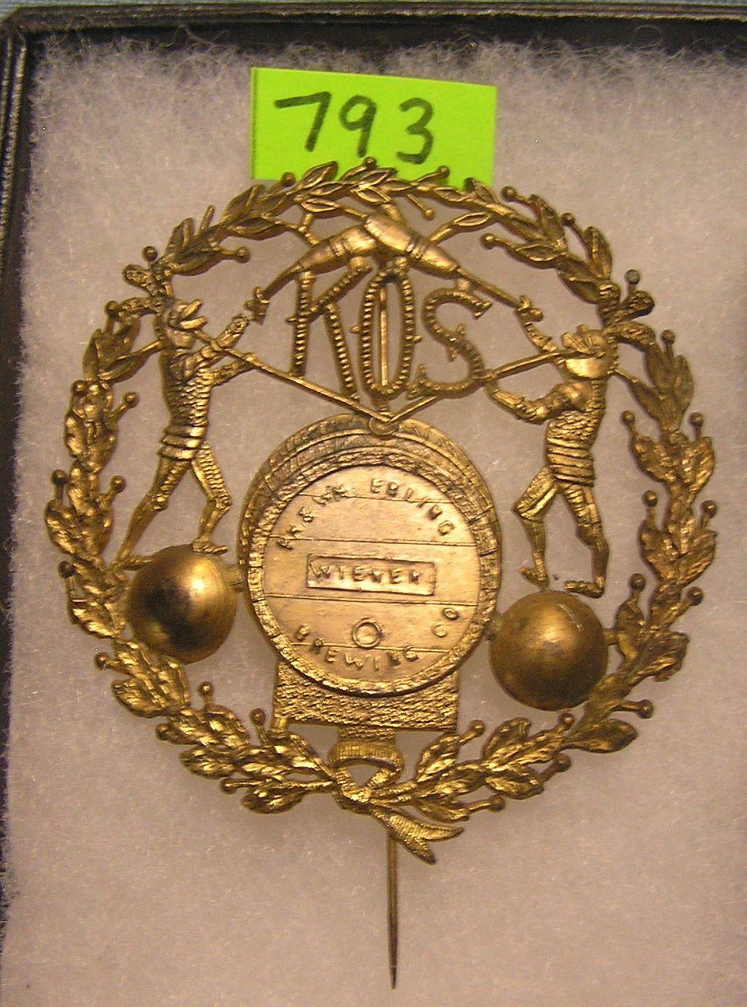 Antique PH & WM Ebelng brewing company gold plated brass award/advertising pin circa 1860’s est. value $250.00-$300.00