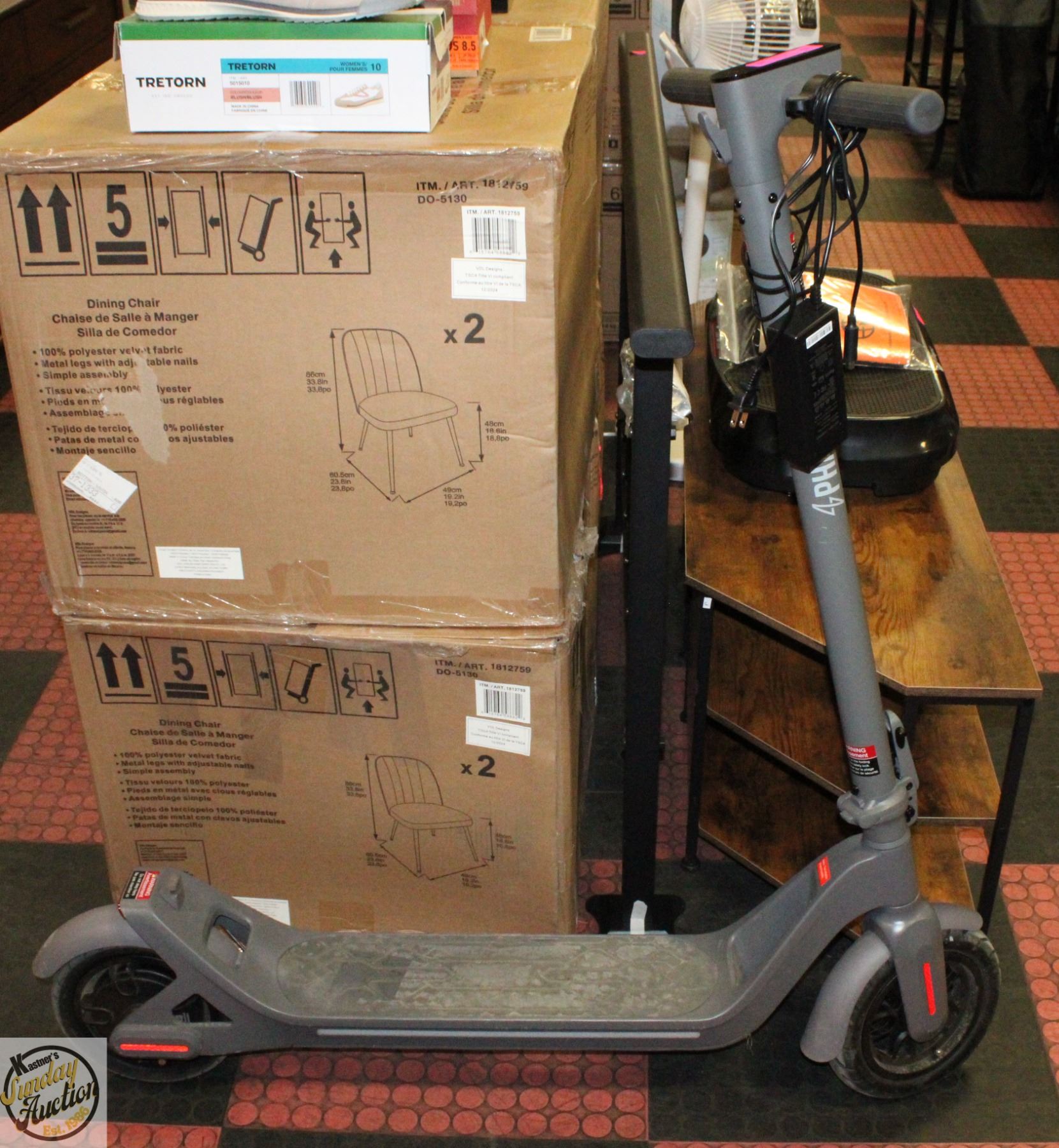 350-450W, MAX LOAD 220LBS, MAX SPEED 25KMPH, MAX DISTANCE 35KM, 45.5 X 7.5 X 19", LED HEADLIGHT, BRAKE LIGHT, TURNING LIGHTS, AMZ SES **ALL ITEMS MUST BE REMOVED BY 5PM SATURDAY, JULY 12TH 2025. ALL REMAINING ITEMS WILL BE SUBJECT TO A $6.00 PER DAY STORAGE CHARGE. ANY ITEMS REMAINING AFTER MONDAY, JULY 28TH 2025 WILL BE CONSIDERED FORFEITED. NO REFUNDS WILL BE ISSUED FOR FORFEITED ITEMS. TO SCHEDULE A PICK UP APPOINTMENT CLICK HERE