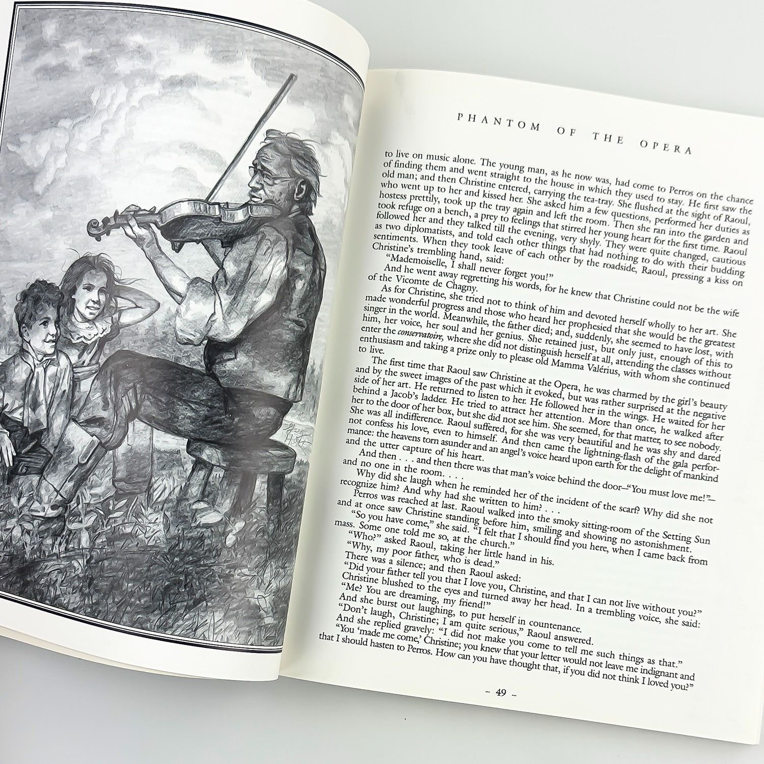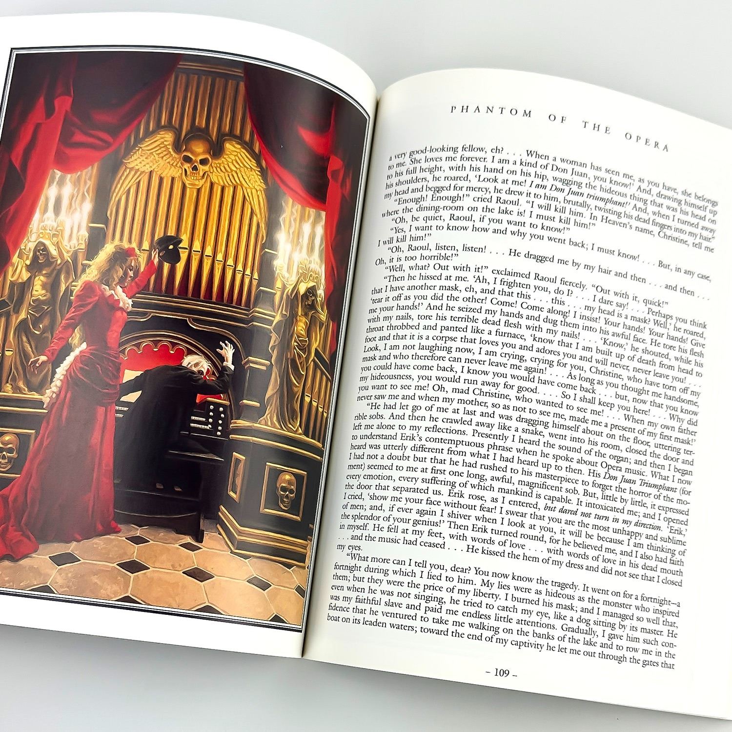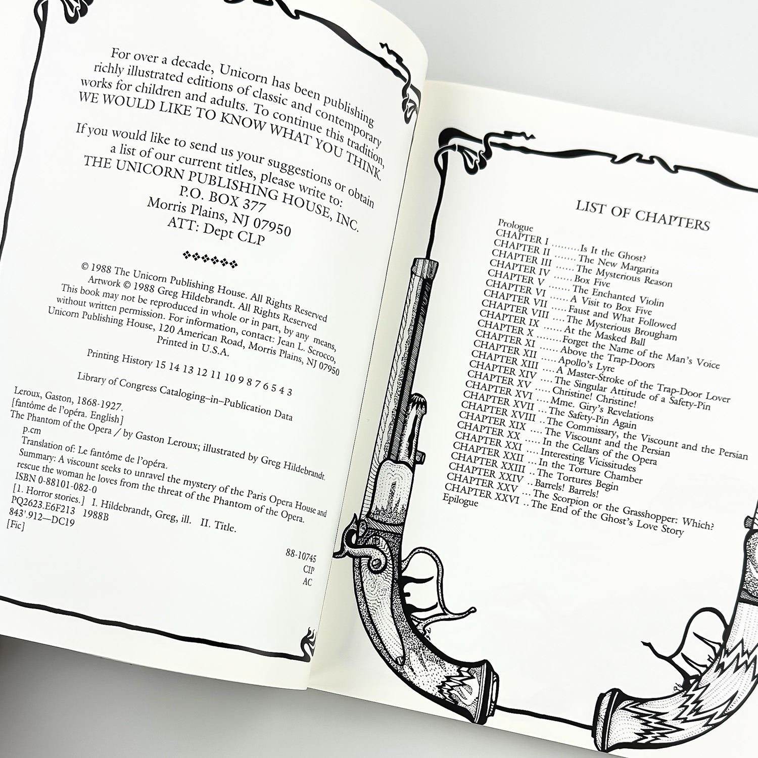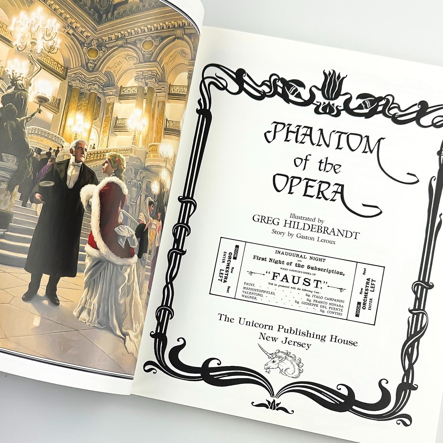 #8095 - PHANTOM OF THE OPERA - STORY BY GASTON LEROUX - ILLUSTRATED BY GREG HILDEBRANDT. SOFTCOVER PAPERBACK BOOK - COPYRIGHT 1988 UNICORN PUBLISHING HOUSE, NEW JERSEY - 208 PAGES. MEASURES: 8” X 10”