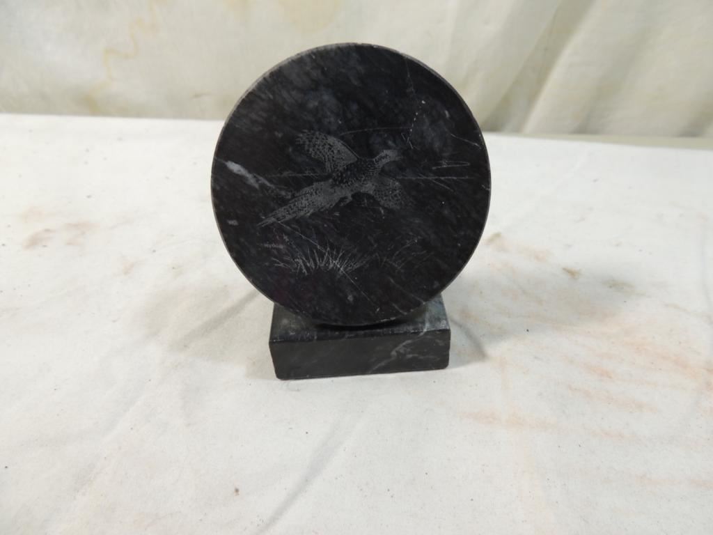 MARBLE PHEASANT ETCHING ART PIECE, DESK TOP DECORATIVE ETCHED AS SHOWN SEE PHOTO FOR MORE DETIALS.