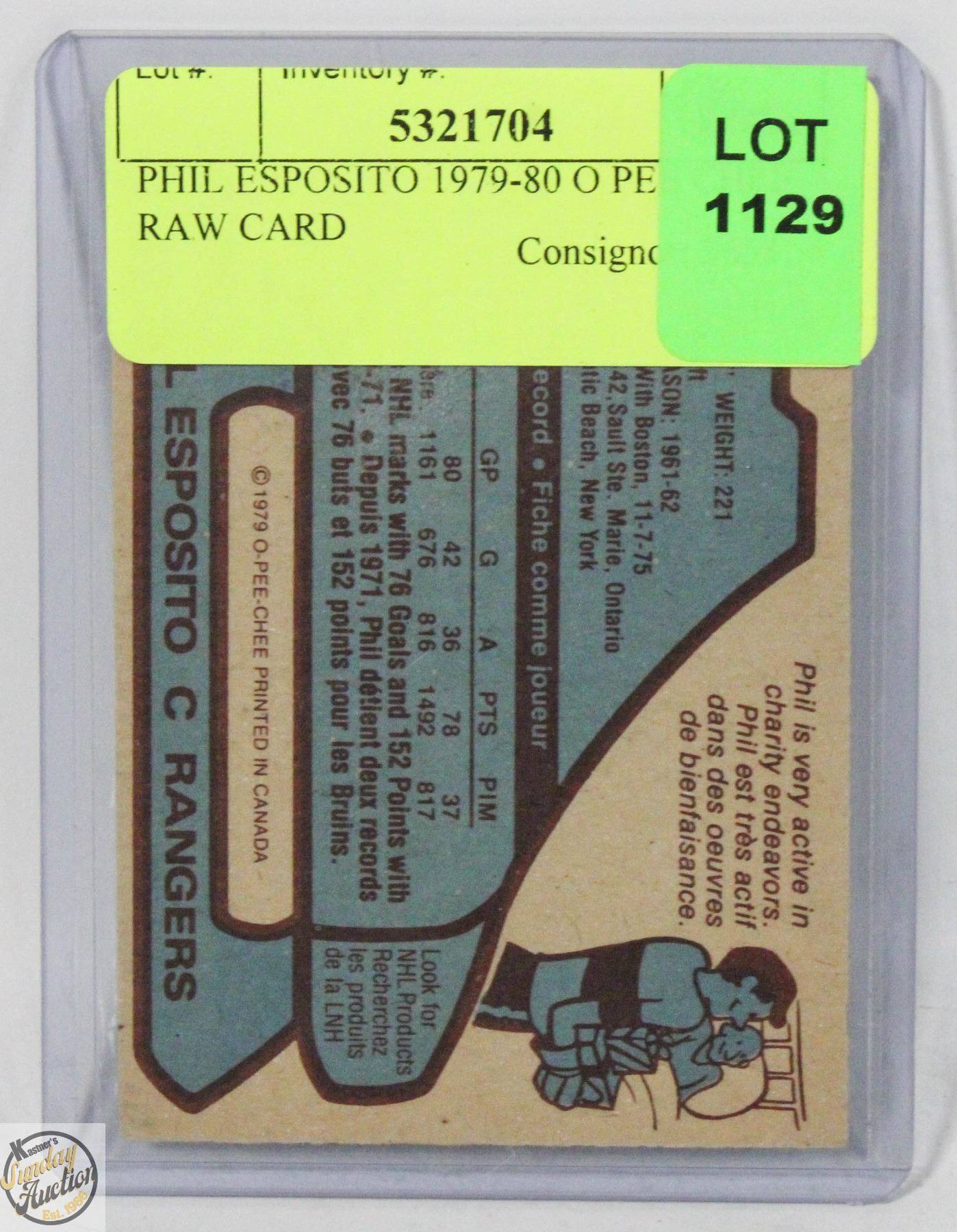 PHIL ESPOSITO 1979-80 O PEE CHEE RAW CARD