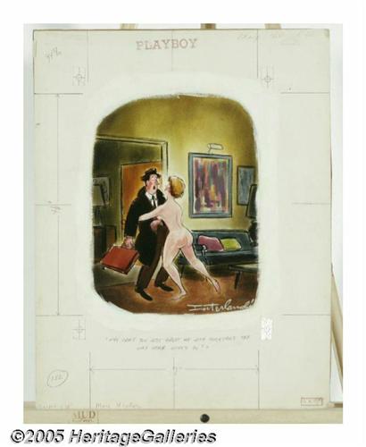 <B>PHIL INTERLANDI (American 1924-2002)</B></I> <BR>Original Cartoon Illustration <BR>Playboy, May, 1960 <BR>Caption: 'Why can't you just greet me with cocktails the way other wives do?' <BR>Gouache on illustration board <BR>16.7in. x 13.1in. <BR>Signed lower right: Interlandi <BR>