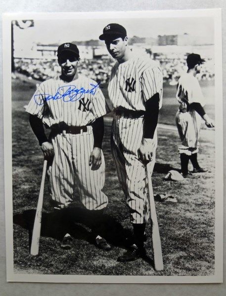 8x10 PHOTO SIGNED BY PHIL RIZZUTO PICTURED WITH JOE DiMAGGIO, BLACK/WHITE