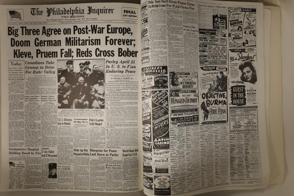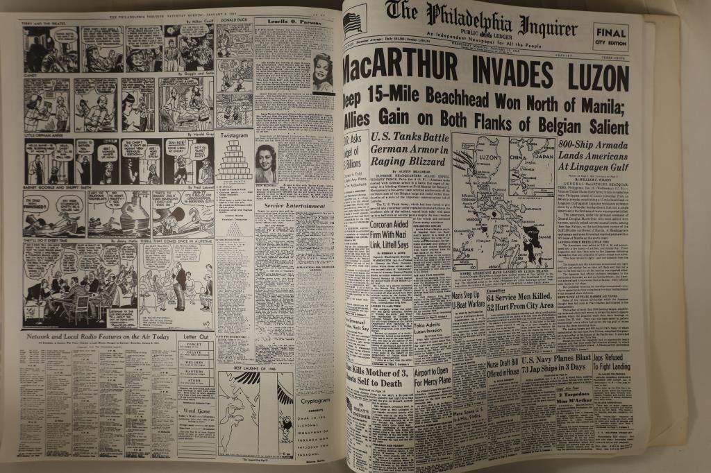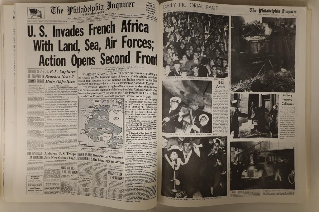 THROUGH THE PAGES OF THE INQUIRER 1939-1945. BOOK IS IN GOOD CONDITION, SLIGHT BENDING ON LOWER RIGHT CORNERS