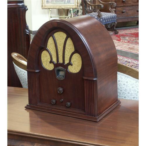 CATHEDRAL RADIO: A restored Philco Model 70-Superheterodyne cathedral tube radio or tuner, circa 1930's, 18'' x 15'' x 10'', works electrically.