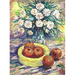 PHILIP CORLEY (Irish/American. Born 1944), "Apple and Flower Still Life". Signed with the artis...