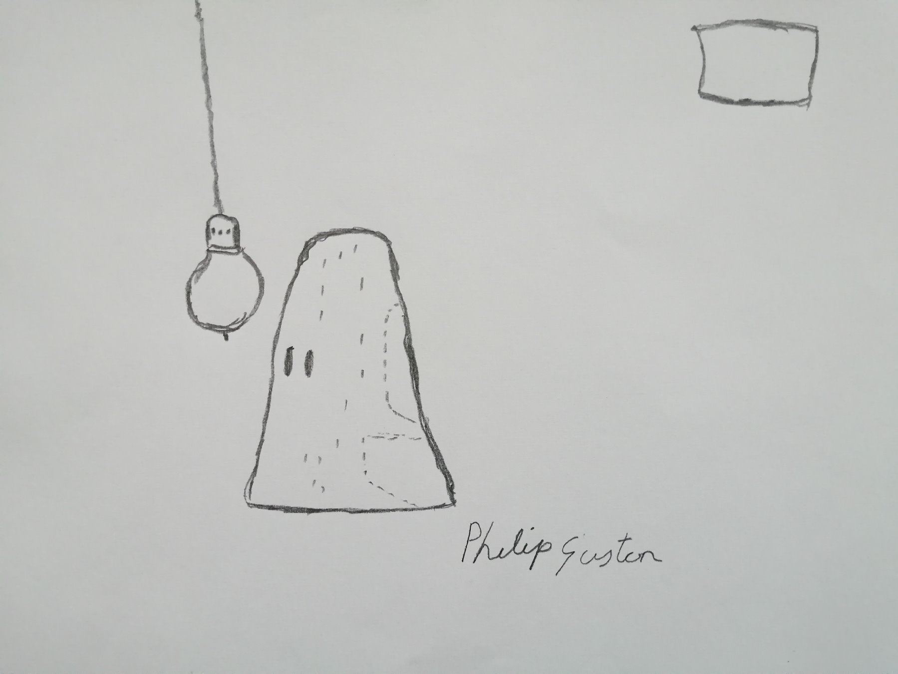 Cartoonish drawing (6x6 inches with signature) by Philip Guston, signed, Mounted, framed and supplied with coa.