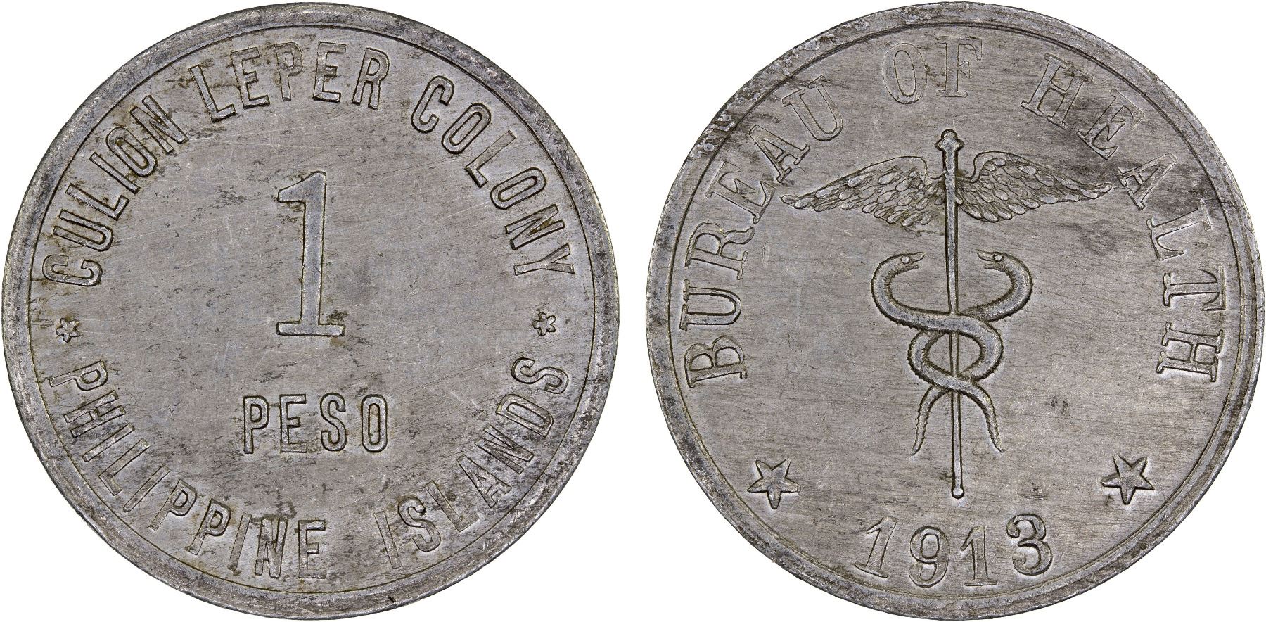 PHILIPPINES: Leprosarium Coinage, 1 peso, 1913, KM-14, aluminum issue for the Culion Island Leper Colony, mintage of 8,600 pieces, thick planchet variety, with traces of original luster, heavy hairlines, Choice About Unc, ex Dr. Robert A. Rosenfeld Collection.