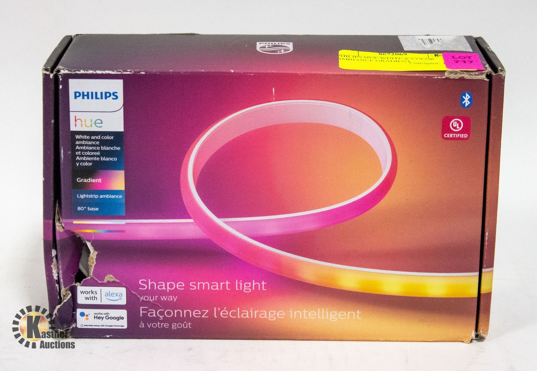 LIGHTSTRIP BASE KIT, 2M, LED STRIP LIGHTS, COLOUR CHANGING, BLUETOOTH & ZIGBEE COMPATIBLE, VOICE ACTIVATED WITH ALEXA, MUSIC SYNC, TESTED, AMZ SES **ALL ITEMS MUST BE REMOVED BY 5PM SATURDAY, MAY 13TH 2023. ALL REMAINING ITEMS WILL BE SUBJECT TO A $6.00 PER DAY STORAGE CHARGE. ANY ITEMS REMAINING AFTER MONDAY, MAY 29TH, 2023 WILL BE CONSIDERED FORFEITED. NO REFUNDS WILL BE ISSUED FOR FORFEITED ITEMS. TO SCHEDULE A PICK UP APPOINTMENT CLICK HERE