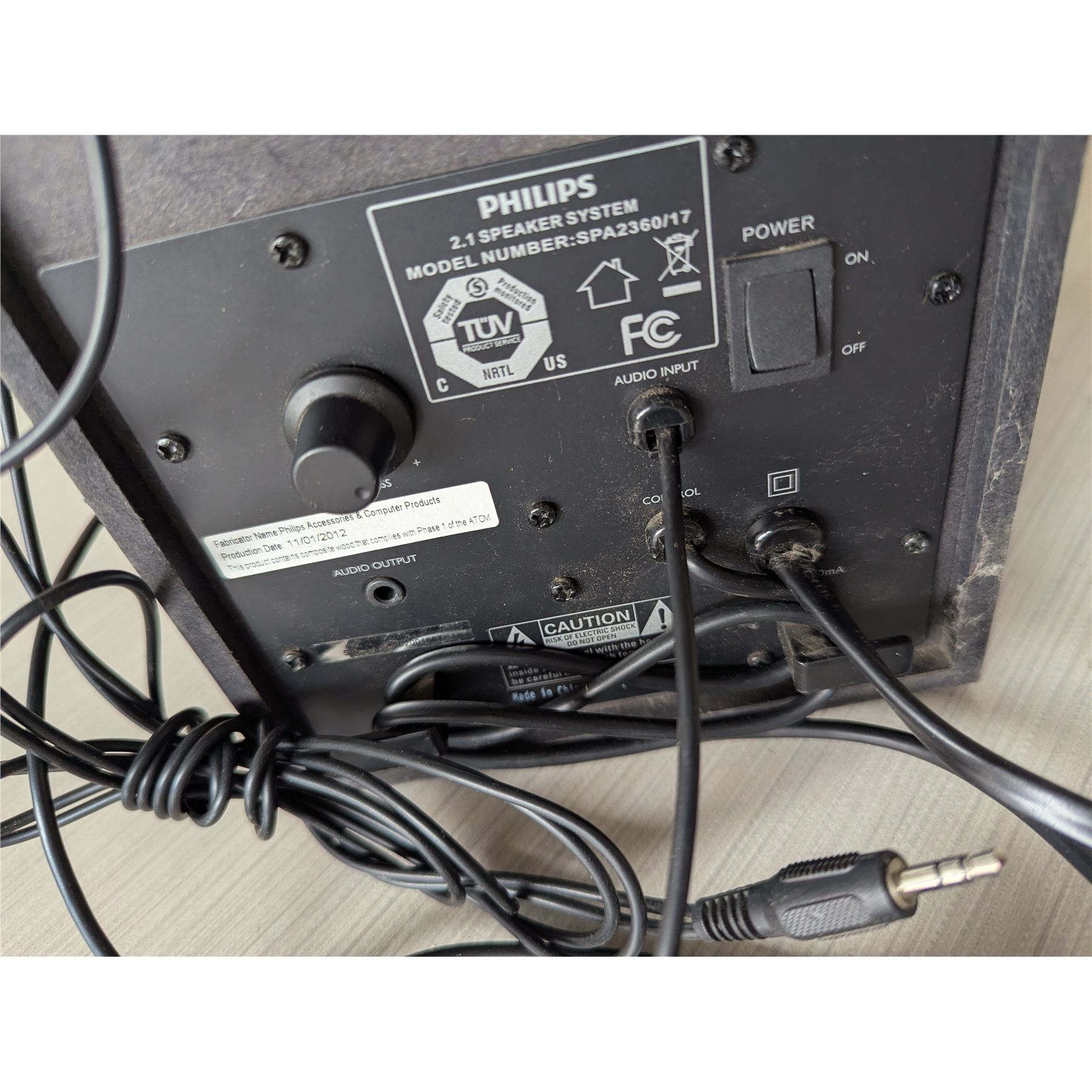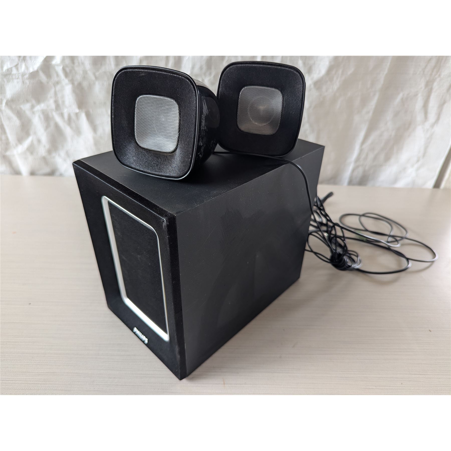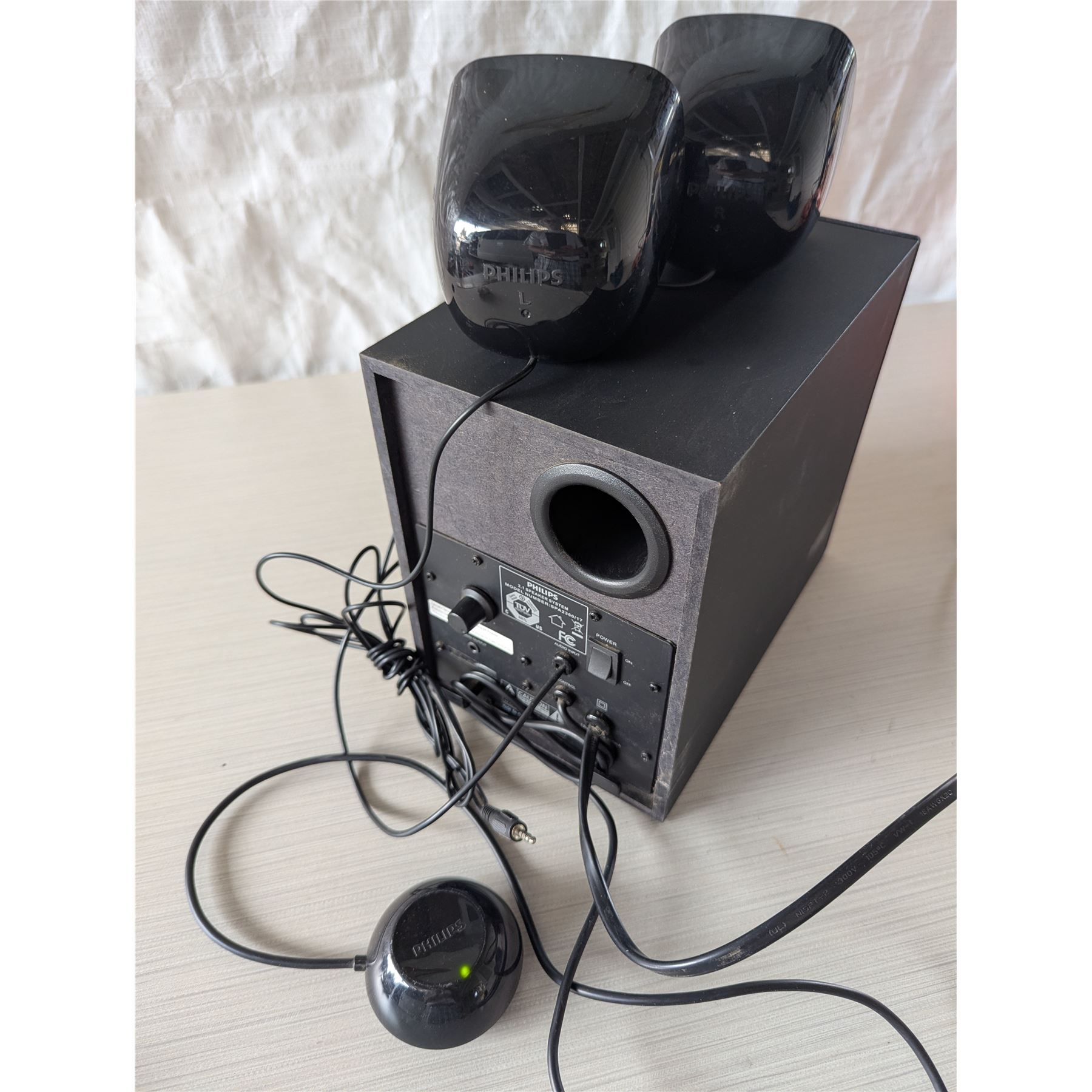 PHILIPS 2.1 Speaker System Model Number: SPA2360/17 Green light comes powers in.