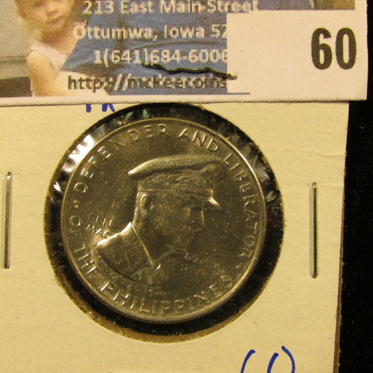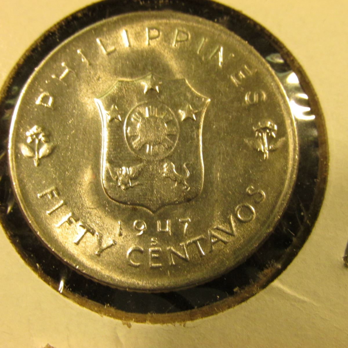 PHILLIPINES SILVER HALF DOLLAR DATED 1947. IT HAS GENERAL MCARTHUR ON IT. HE WAS A NATIONAL HERO TO THE PHILLIPINES FOR LIBERATING THEM FROM THE JAPANESE.