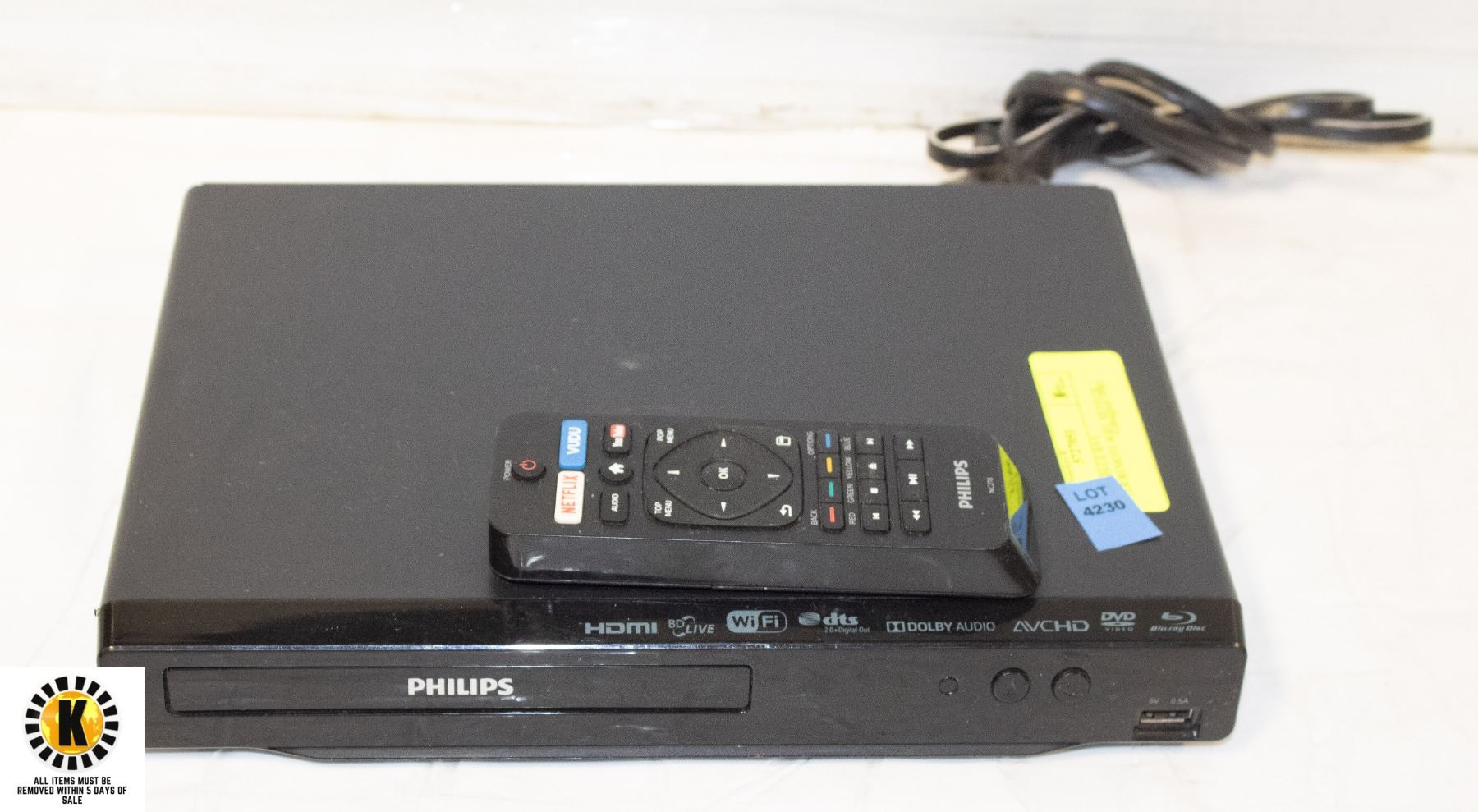 PHILLIPS BLUE RAY PLAYER/REMOTE WIFI, NETFLIX,