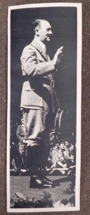THIS IS A PHOTO OF HITLER FROM PERIOD WITH GERMAN WRITING ON BACK ADDRESSING HITLER YOUTH. THE PHOTOS IS 6 3/4' X 2 1/2". *