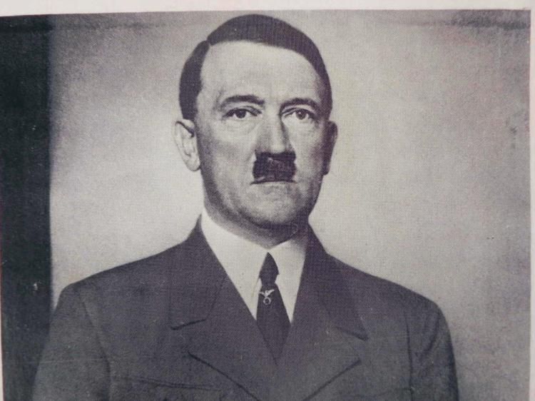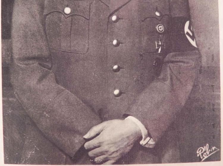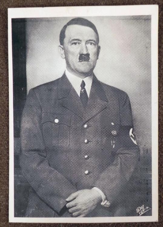 PHOTO POSTCARD OF ADOLF HITLER-ORIG-IN FULL UNIFORM-4X5 3/4"-FRONT CORNER READS "POHN"--SHOWS AGE--COUPLE OF STAINS-NICE BRINGBACK