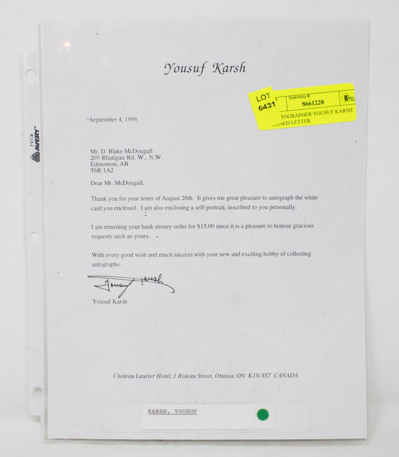 PHOTOGRAPHER YOUSUF KARSH SIGNED LETTER