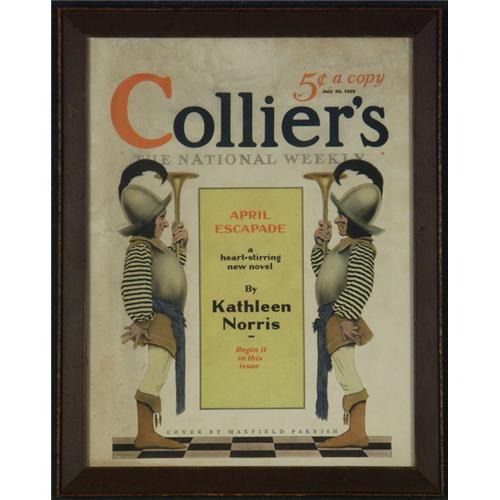 COLOR PHOTOLITHOGRAPH 12 3/4'' x 10 3/4''. Maxfield Parrish (1870-1966), NH. 1929 ''Collier's Weekly'' Cover. Note condition. Placed in a period frame, as seen.