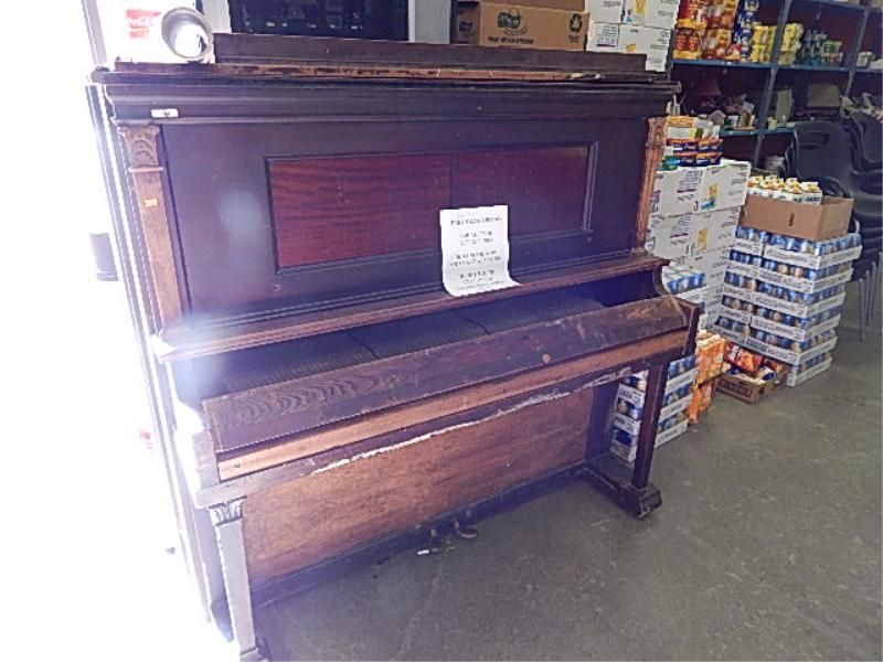 PIANO - UPRIGHT - MADE IN ONTARIO - STEEL BACK - PLAYS WELL OUTER WOOD AS-IS