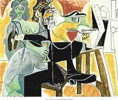 PABLO PICASSO "COUPLE WITH DRINKS" - NUMBERED LIMITED EDITION GICLEE' ON HEAVY ARCHIVAL WOVE PAPER - ESTATE SIGNED IN PENCIL "Collection Domaine Picasso" - UNFRAMED - MINT - 20" X 13" APPX PAGE