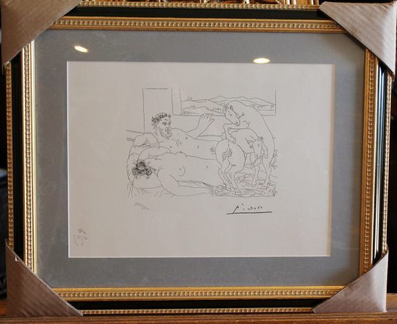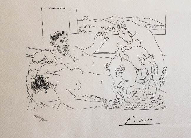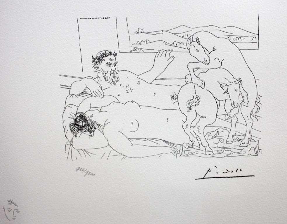 PABLO PICASSO - VOLLARD SUITE LIMITED EDITION LITHOGRAPH "PLANCHE LXIV" ON HEAVY TEXTURED ARCHES PAPER - PUBLISHED BY S.P.A.D.E.M. IN 1973 - HAND NUMBERED IN PENCIL 736/7200 - SIGNED IN THE PLATE - PROFESSIONALLY FRAMED AND MATTED