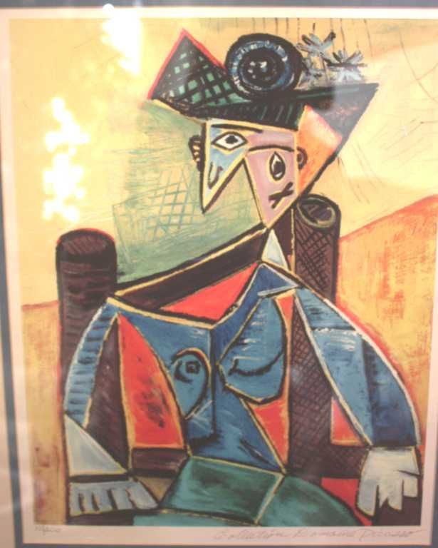 PABLO PICASSO - "SEATED WOMAN IN ARMCHAIR"- LTD EDITION LITHOGRAPH - PROFESSIONALLY FRAMED AND MATTED - MINT CONDITION - ESTATE SIGNED WITH SEAL - FRAMED SIZE APPX 28 X 24 1/2