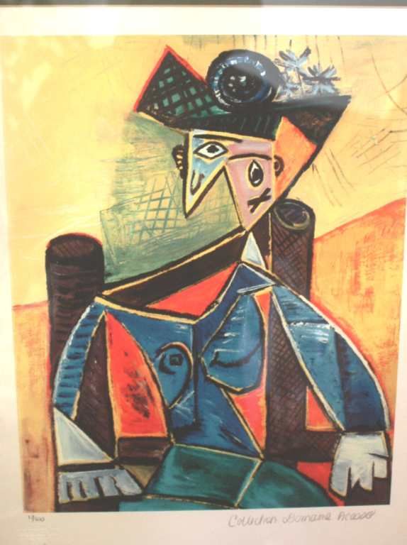 PABLO PICASSO - "SEATED WOMAN IN ARMCHAIR"- LTD EDITION LITHOGRAPH - PROFESSIONALLY FRAMED AND MATTED - MINT CONDITION - ESTATE SIGNED WITH SEAL - FRAMED SIZE APPX 25 X 20